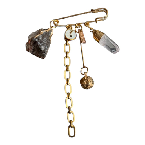 Mippies – Handgemaakte broche/speld met bedels en halfedelstenen, Hand-made in Nederland